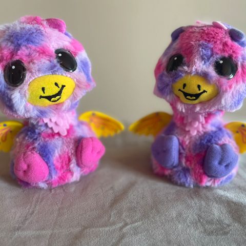 Søde og sjove Hatchimals tvillinger. Øjnene lyser i forskellige farver. De snakker, danser og synger når man trykker dem på næserne, leger med og aktiverer dem. Jeg har ikke brugsanvisningen, men den ligger på nettet.