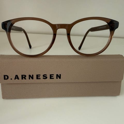 D. Arnesen unisex solbriller i brun plast med rundet stel. Glassene har gradueret toning, der går fra mørkere i toppen til lysere i bunden. Stellet er let og egnet til daglig brug for både mænd og kvinder. Leveres med etui med D. Arnesen-logo.