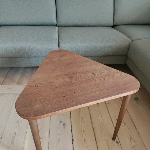 Gl sofabord i teaktræ. God højde og skønt med hylde.