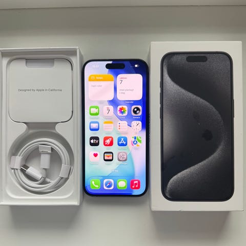 Iphone 15 pro natural titanium inkl. tilbehør