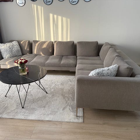 De to midterstykker måler tilsammen 150cm (pladsen til sofabordet)