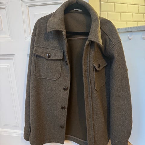 Zara Man jakke til herre i str. S. Jakken er brun og fremstillet i bomuld. For 50 procent polyesterDen har knaplukning foran, forlommer og foret inderside. På ærmerne ses forstærkede albuelapper i ternet stof, og ærmerne har knapdetaljer ves hǎndled Velegnet som let overtøj eller som blazer-inspireret jakke til hverdag og pænere brug.
