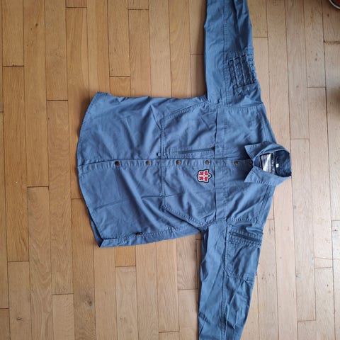 Meget velholdt FDF skjorte med gitter på ærmet. Jeg ville have valgt kategorien "som ny", hvis ikke der var en ret ubetydelig gul/ grøn plet nederst foran.