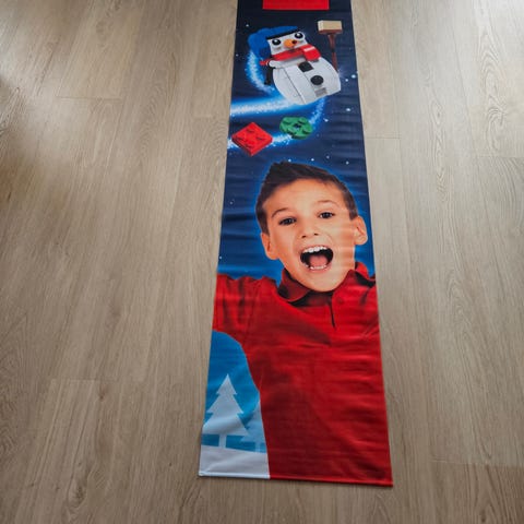 LEGO Masters banner med LEGO logo og motiv fra LEGO Masters. Velegnet som dekoration til væg eller gulv ved LEGO-arrangementer, børneværelse eller hobbyrum.