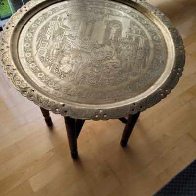 Meget smukt antikt restaureret bord til hall eller entré med messingbeslag