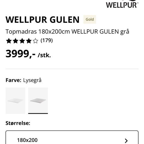 Jysk Wellpur Gold T65 topmadras 180x200 cm hvid skum