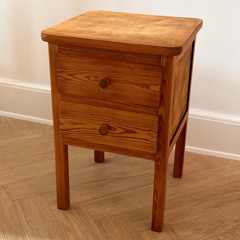 To sengebordet i egetræ