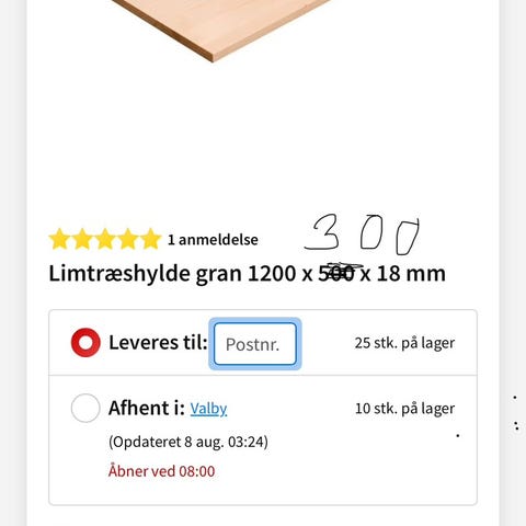 Limtræshylde i fyrretræ måler 20x120x1,8 cm