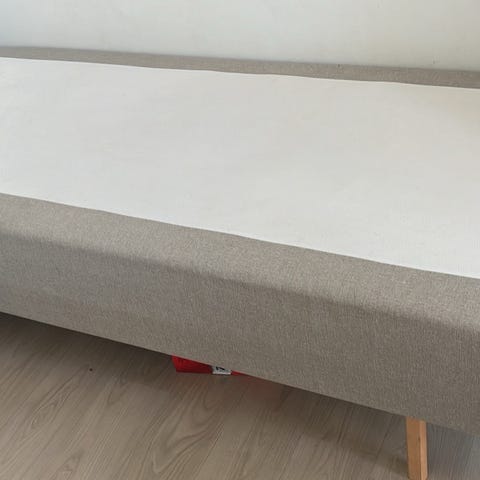 Jysk seng med gråt betræk fin ingen skader og pletter. har været gæsteseng