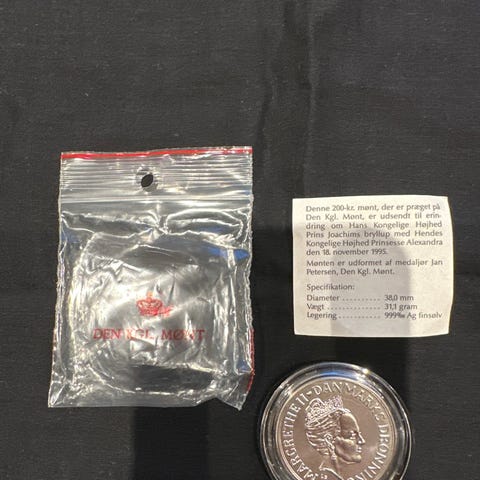 200 kr. sølvmønt fra Dronning Margrethe og Prins Henrik sølvbryllup.