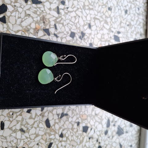Søde sølvfarvet øreringe med lille sten, ukendt mærke og materialer da jeg ikke kan finde nogen stempling