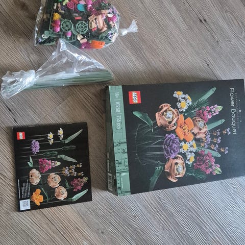 LEGO Botanical Collection Flower Bouquet byggesæt. Sættet består af LEGO klodser, der samles til en buket med forskellige blomster og grønne stilke. Modellen er beregnet som udstillings- og dekorationsmodel og kan placeres i en vase efter eget valg. Sættet tilhører LEGO Botanical Collection-serien, som fokuserer på botaniske motiver bygget af LEGO klodser.