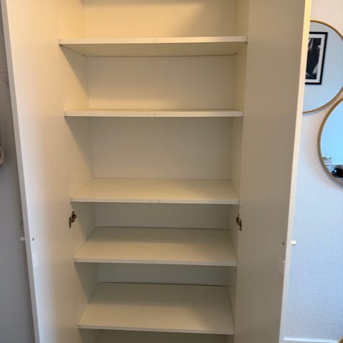IKEA Billy reol sælges da jeg skal flytte. Der er et hak på siden og hul til ledninger bag på. Der er hylder i skabet, som vist på billedet fra IKEA.