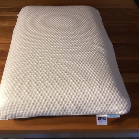 Dunlopillo pude med latex fyld. Fyldet gør at du kan forme puden.
