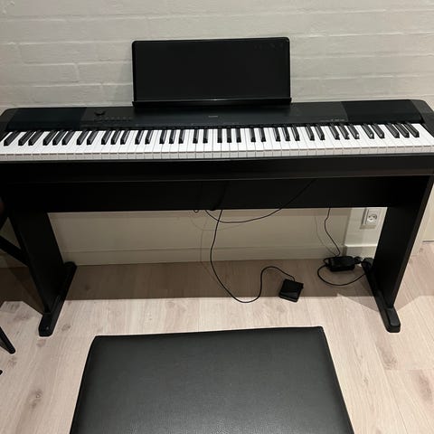 Casio Casiotone CT-S1 digitalpiano med 61 tangenter i sort. Kompakt keyboard med indbyggede højttalere og betjeningsknapper på fronten til valg af lyde og funktioner. Leveres med strømforsyning som vist på billederne.