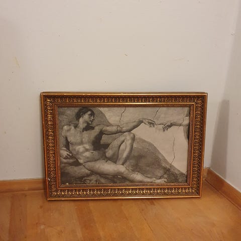 Tegningen er monteret med passepartout. Ramme med plexiglas medfølger.