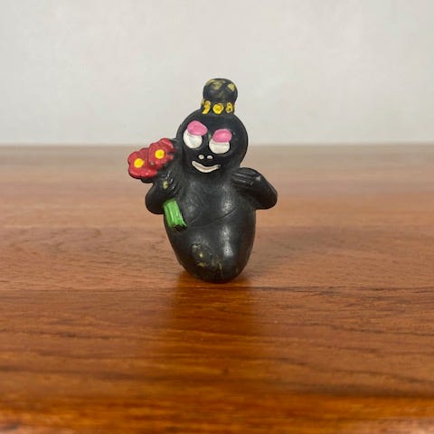 Vintage Barbalala figur fra serien Barbapapa. Figuren er grøn, 4,5 cm høj og er fra 1970'erne.