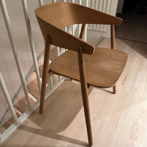 De er 1,5 år gamle i hvidpigmentet bøg med læder pude.