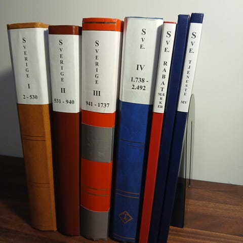 Jeg købte de 6 samlede bind for en del år siden, og gav kr.2.000,- for dem.