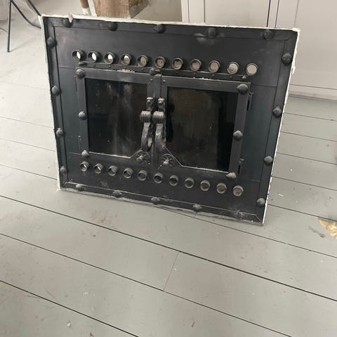Indbygget pejseindsats i metal med glaslåge bortskaffes.