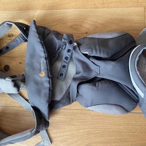 Ergobaby bæresele i sort. Bæreselen er egnet til at bære baby på maven. Den har polstrede skulderstropper og bred hofterem, som fordeler vægten. Justerbare remme gør det muligt at tilpasse selen til både bærer og barn. Egnet til brug i hverdagen, på ture og rejser, hvor der er behov for at have barnet tæt og samtidig have hænderne fri.
