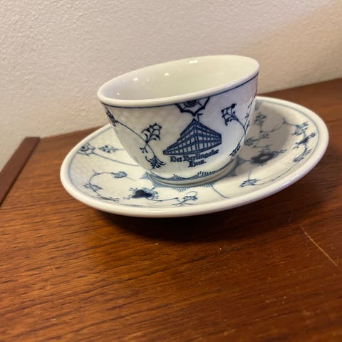 Bing & Grøndahl Mussel hotel kaffekopper 744 med underkopper porcelæn blå-hvid