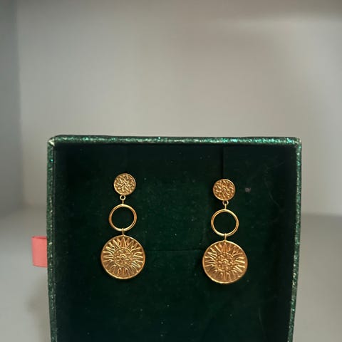 Izabel Camille øreringe i forgyldt materiale til kvinde. Øreringene har en buet, struktureret overflade og lukkes med almindelig stik-lås. Leveres i æske fra Izabel Camille som vist på billederne.