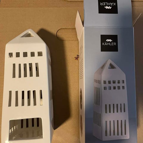 Kähler Urbania lysestager i hvid keramik. Sættet består af flere husformede fyrfadsstager med udskårne vinduer, der giver et lysende bymotiv, når der sættes fyrfadslys i. Lysestagerne er velegnede som dekoration i vindueskarm, på hylde eller bord og kan bruges enkeltvis eller samlet som et lille bymiljø.