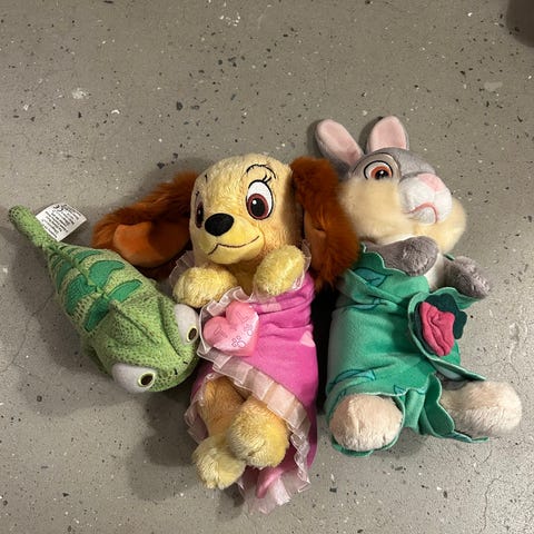 Disney bamser i blandede modeller og farver i blødt stof. Velegnet som legetøj til børn eller som pynt på børneværelset. Sælges samlet som et parti med forskellige figurer og størrelser i samme pose.