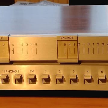 Visuelt pæn. Tænder, men udgang til pladespiller er muligvis defekt. Sælges derfor til reparation.