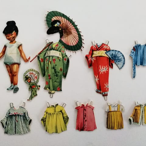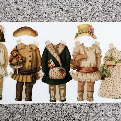 Mary Poppins påklædningsdukke med børnene. Mary måler 33 cm. Fod delen på Mary er gået af.