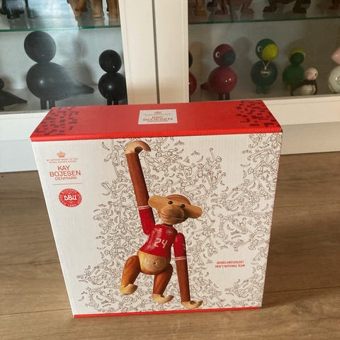 Kay Bojesen - Abe, 18,5 cm i den ikoniske hjemmebane fodboldtrøje fra epoken omkring VM-slutrunden i Mexico 1986. Helt ny i orignal emballage.