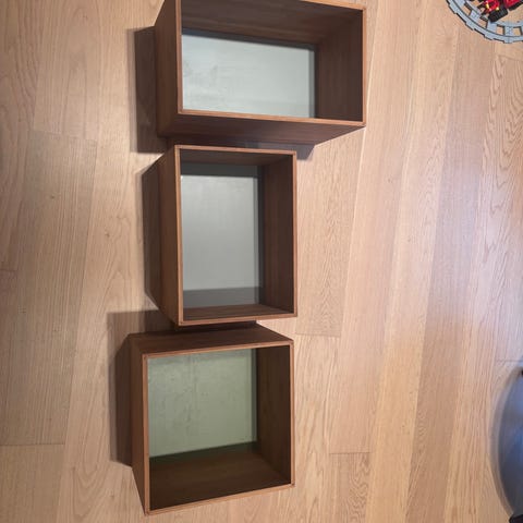 Bogkasser i forskelle farver. Kan sættes sammen i 1 række eller 2 + 2 kasser.