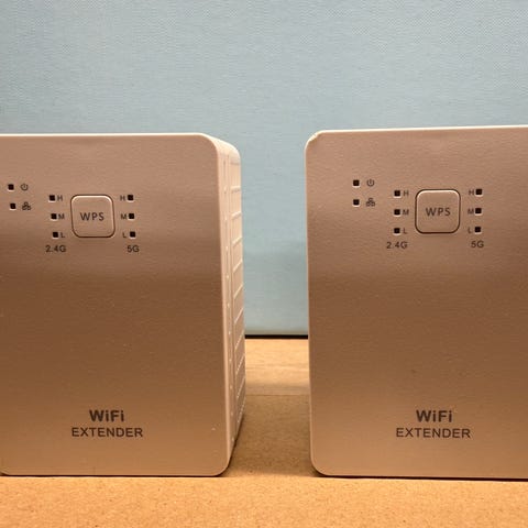 TDC Airties Air4920 WiFi extender i hvid. Enheden tilsluttes direkte i stikkontakten og bruges til at udvide det trådløse netværk i hjemmet. På billederne ses strømforsyning, netværkskabel og vejledning til opsætning af TDC WiFi Extender. Understøtter 220–240 V, 50/60 Hz indgangsspænding. Velegnet til brug sammen med TDC internetudstyr til forbedring af WiFi-dækning i boligen.
