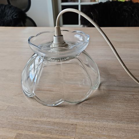 Mål højde på selve glasskærmen er 22 cm diameter. 30 cm højden på metal stangen er 35 cm.