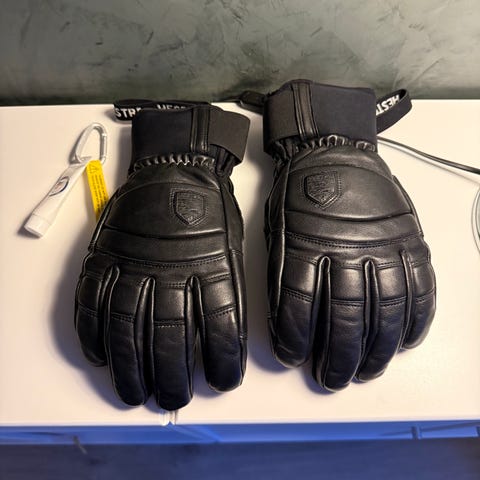 Hestra skihandsker til kvinder i størrelse M. Handskerne er sorte og fremstillet i polyester og skind med foring og justerbar lukning ved håndleddet. Velegnede som vinter- eller skihandsker, hvor der er behov for varme og vindafvisende beskyttelse til hænderne.