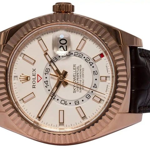 Rolex Sky-Dweller ref. 326933 - fuldt sæt købt som nyt september 2023. Garantikort dateret oktober 2022. Almindelige hairlines. Anvendt i rotation med et stort antal andre ure.