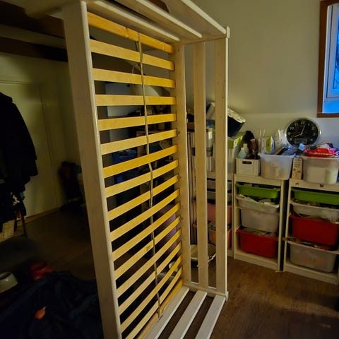 Jeg har en sengehest som passer til sengen, skal bare sættes på kanten. Den koster 75 kr