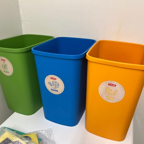 Price is for all three: two small bins and one large recycling bin. Available to buy separately as well message me if interested