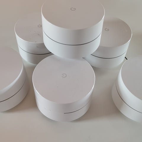 5 stk Google Wifi mesh routere i hvid. Inkl strømforsyninger.