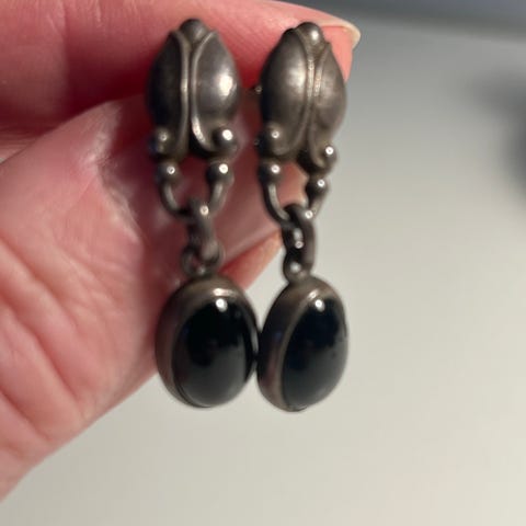 Georg Jensen sølv øreringe til kvinde. Øreringene er udført i sølv og har et organisk, buet design. Velegnet til hverdagsbrug eller mere formelle anledninger. Klassisk smykke i enkelt og tidløst udtryk. Nypris 1500kr