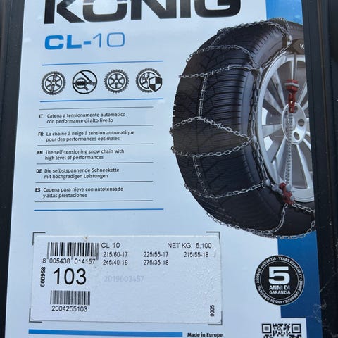 König No Problem 080 snekæder til personbil. Sættet består af et par snekæder i metal med farvekodede plastdele til montering. Leveres i gul plastkuffert med brugsanvisning. Passer til udvalgte dækstørrelser angivet på emballagen, herunder blandt andet 185-14, 175-15, 205/70-13, 195/70-14, 185/70-15, 205/65-14, 195/65-15, 205/80-15, 225/55-14 og 205/50-16. Velegnet til brug på sne- og isglatte veje, hvor snekæder er påkrævet eller anbefalet.
