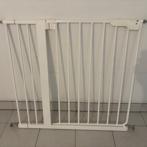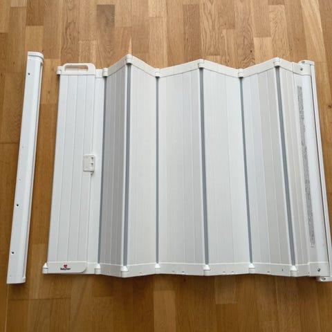 BabyDan Premier sikkerhedsgitter i hvid. Gitteret er egnet til brug ved trapper eller døråbninger i hjemmet for at afskærme områder for små børn. Det monteres med vægbeslag/trykbeslag i siderne og kan åbnes i siden med håndbetjent låsemekanisme. Velegnet til indendørs brug i børnefamilier, hvor der er behov for afskærmning omkring trapper eller gennemgange.