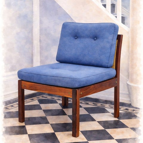 Ramme intakt, ene bund istykker og den anden slap. Delvis hynder. Pris derefter.