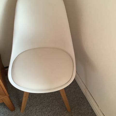 Spisestuestol i plast med træben i egetræ og sort sæde/skal. Stolen har formstøbt sæde med armlæn og let skrånende ben, der giver et stabilt underlag. Velegnet som spisebordsstol, kontorstol uden hjul eller ekstra stol i stue eller køkkenalrum.