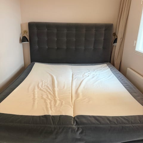 Seng i str 180x200 i en brun farve, i velour. Der er nogle pletter på madras & topmadras, derfor den billige pris. Sengen har også 2 opbevaringsskuffer med hjul. Skal afhentes på 2 sal, og vi kan hjælpe med afmontering af sengen. Brugt i 2 år.