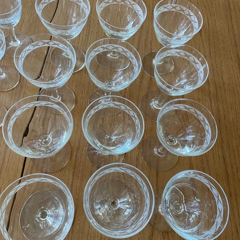 Ejby likørskåle fra holmegaard, glassene er I ok stand, der er ingen skår eller afslag. Der er 15 stk I alt. Prisen er 20 kr pr stk eller alle 15 for 250kr. Varen kan sendes på købers regning. Se også mine andre opslag for flere ejby glas.