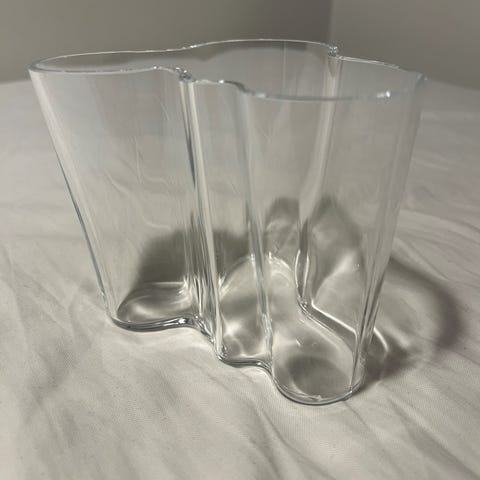 Iittala Alvar Aalto vase i klar mundblæst glas.