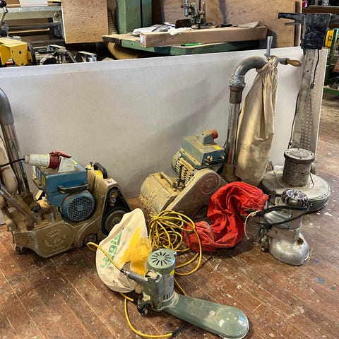 Gulvsliber til slibning af trægulve. Maskinen er egnet til plan- og finslibning af gulvbrædder og parket. Der medfølger sandsynligvis slibebånd, som kan anvendes til forskellige grovheder afhængigt af opgaven. Velegnet til klargøring af gulve før efterbehandling med lak, olie eller sæbe. Maskinen tilsluttes almindelig strøm og betjenes via håndtag med styring frem og tilbage på gulvfladen.