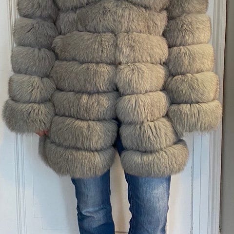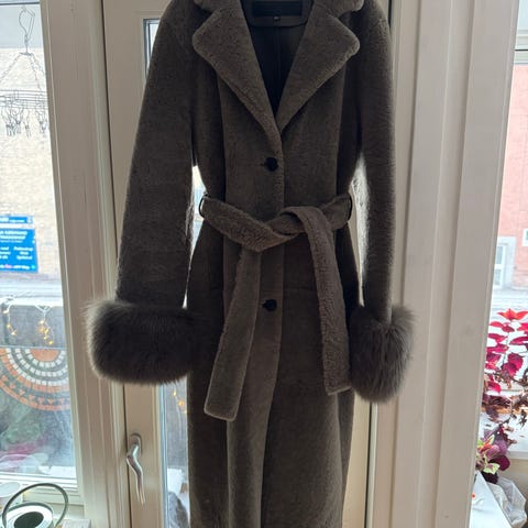 MEOTINE frakke i pels til kvinder i grå farve i størrelse M/L. Frakken er fremstillet i certificeret farmet minkpels og læder fra lam. Modellen har knaplukning foran og sidelommer. Indersiden er glat læder, mens ydersiden er blød og pelset. Velegnet som varm overtøjsfrakke i de kolde måneder.